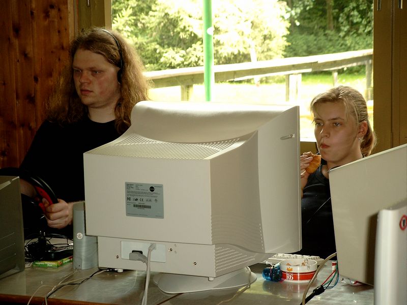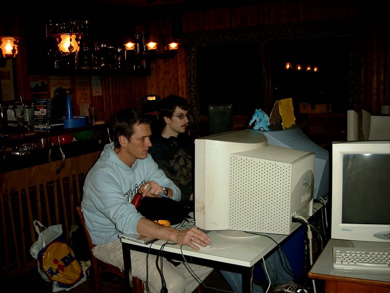 GOTCHA oder ISOTRON ;), Sven und im Hintergrund bekommt ein Gast eine Einweisung von Smutje an Vader's Rechner
