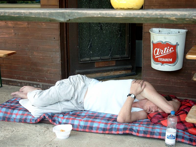 Völlig entspannt nach den ersten Runden: Xtreme Essen - so langsam trudeln auch die Langschläfer ein *feix*