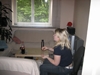 Hat schon Kaffee getrunken, und übt schon mal für später, damit sie auch mal eine Chance hat zu gewinnen